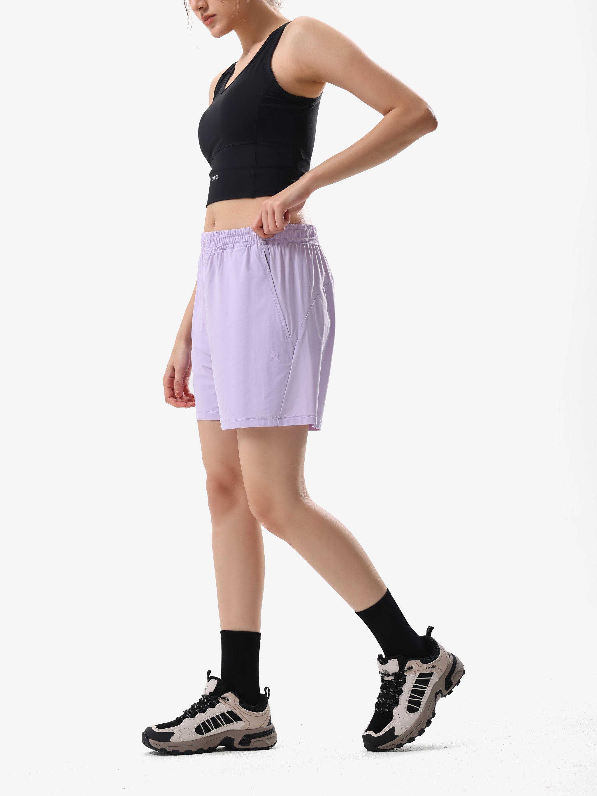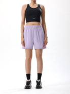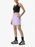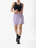A women’s knit short designed for effortless summer comfort. The soft, lightweight fabric and relaxed fit allow free movement, while the adjustable waistband ensures a personalized fit. Slanted pockets provide practical storage, and subtle brand detailing adds understated style. Perfect for casual outings, home lounging, or light outdoor activities.